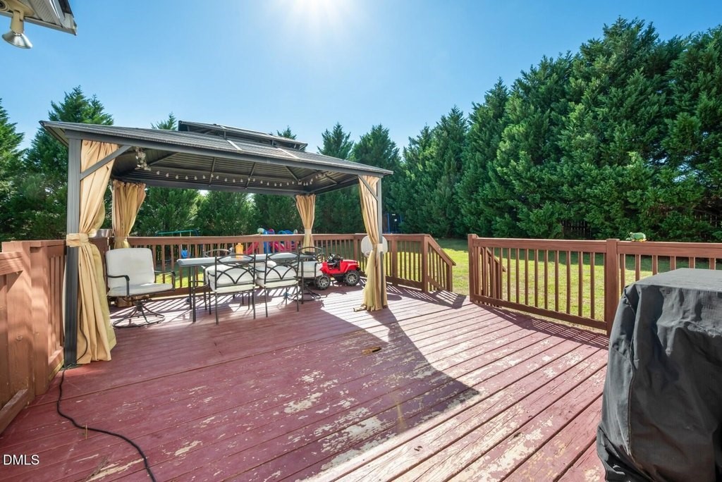 Located in the Richmond Park community in Cameron, NC, this spacious 3-bedroom, 2.5-bath home offers no HOA and ample room with a large family room with fireplace, dining room, and a sunroom on the main level. The home features a massive bonus room with an attached flex room for private office, home gym or craft room. The primary bathroom is equipped with dual vanities, a separate shower, a garden tub, and a private toilet room. Exterior highlights include a fully fenced backyard with mature privacy trees and a back deck. Recent updates include a new roof (Oct 2022) Commute conveniently: 15-20 minutes to Fort Bragg/Fayetteville and 30 minutes to Southern Pines.